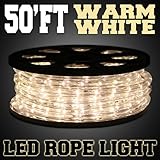 50'ft Warm White 2-wire LED Rope Light Home Outdoor Boat Christmas Lighting 110v