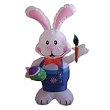 4' Airblown Inflatable Easter Bunny with Paintbrush Lighted Yard Art Decoration